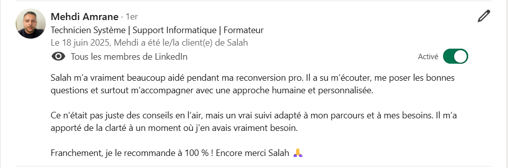 En revanche, toutes les personnes que j'ai accompagnées et qui sont réellement passées à l'action ont obtenu des résultats : job, reconversion réussi, évolution de carrière ou premières missions freelance.