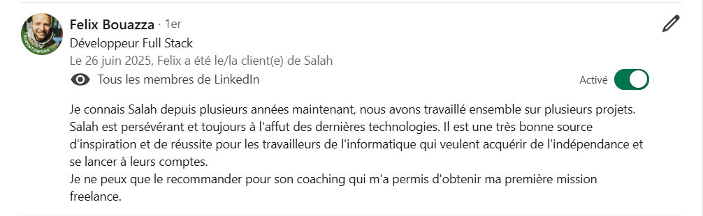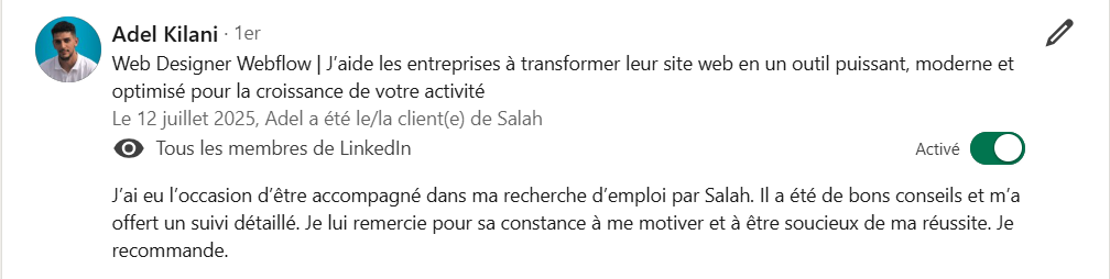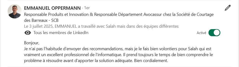Découvrez ce que mes collègues, partenaires ou clients disent de mon travail, de mon engagement et de ma méthode.